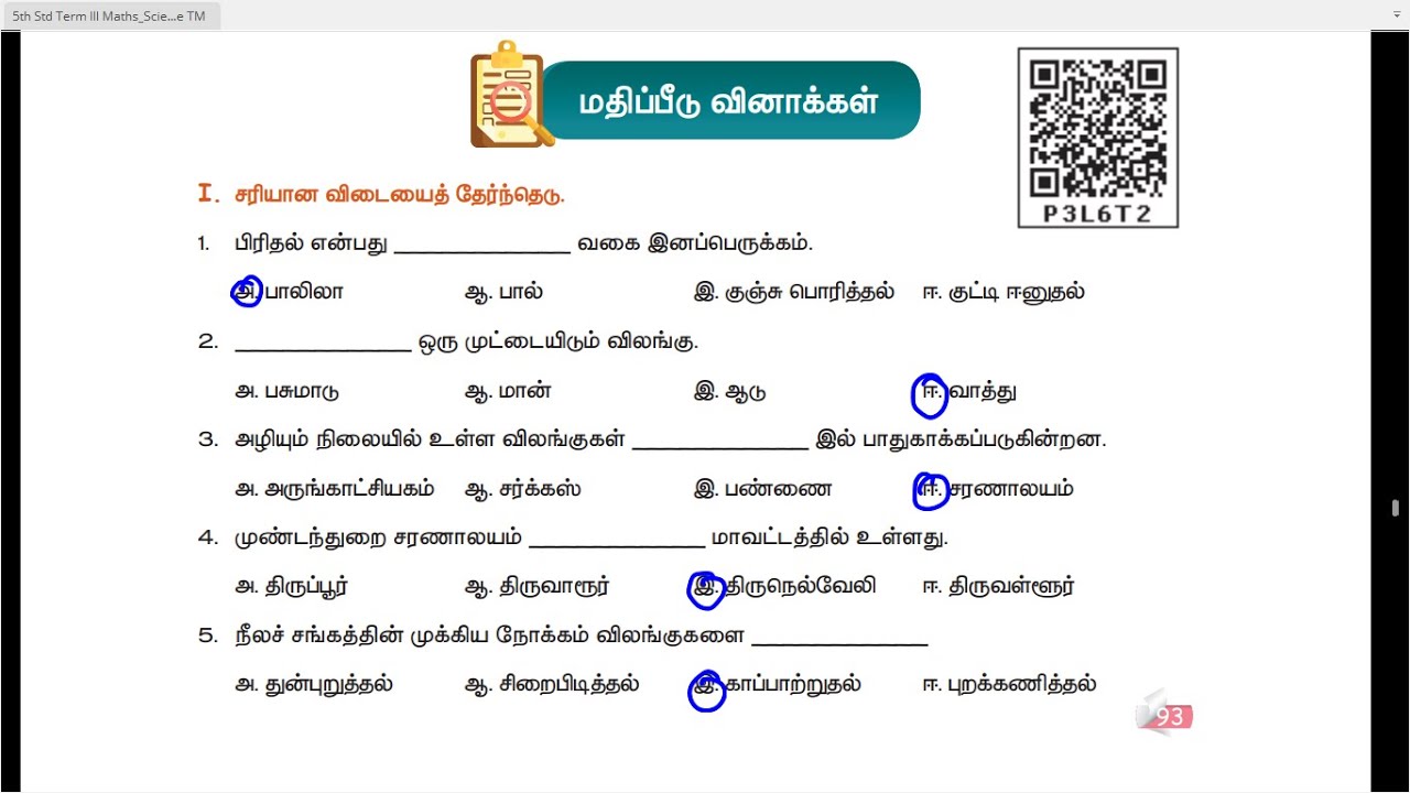 5 TH SCIENCE - TERM 3 - UNIT 2 - விலங்குகள் - மதிப்பீடு